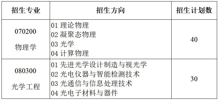 物理科学与技术学院2026年硕士研究生招生计划