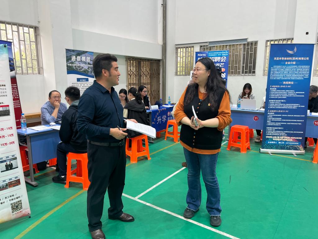 招聘会现场,物理学院党委副书记周茹带领负责辅导员全程参与,与参会企业人事负责人逐一深入交流。交流过程中,双方重点探讨了当前企业招聘进度、岗位需求标准、人才培养方向等核心问题,周茹副书记向企业详细介绍了学院毕业生的专业素养、培养特色及就业意向,同时认真倾听企业诉求,为后续深化校企合作、建立长效对接机制、实现人才供需精准匹配筑牢基础。
