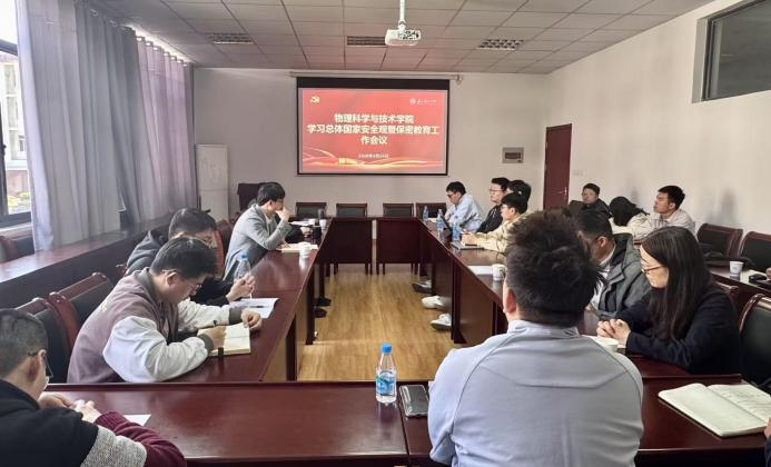 为深入贯彻总体国家安全观,强化全院教职工国家安全意识与保密责任,4月24日上午10点,物理科学与技术学院于教二楼226会议室召开学习总体国家安全观暨保密教育工作会议。学院领导班子成员、院长助理、三办主任、各系部主任、各党支部书记及新入职教职工参会,会议由学院党委书记孙云飞主持。
