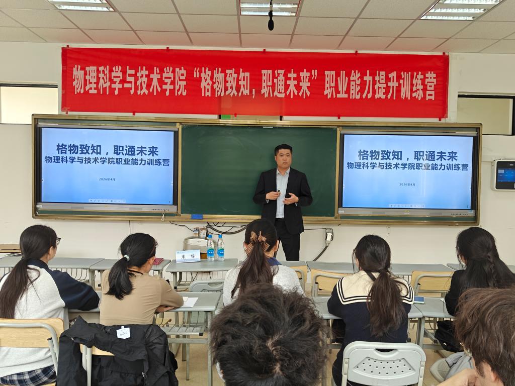 为扎实做好就业指导工作,帮助学生提升职业竞争力,4月15日,物理科学与技术学院举办“校友开讲啦”暨“格物致知,职通未来”职业能力训练营活动。本次训练营邀请我校优秀校友束缘担任主讲老师,学院辅导员全程指导参与。