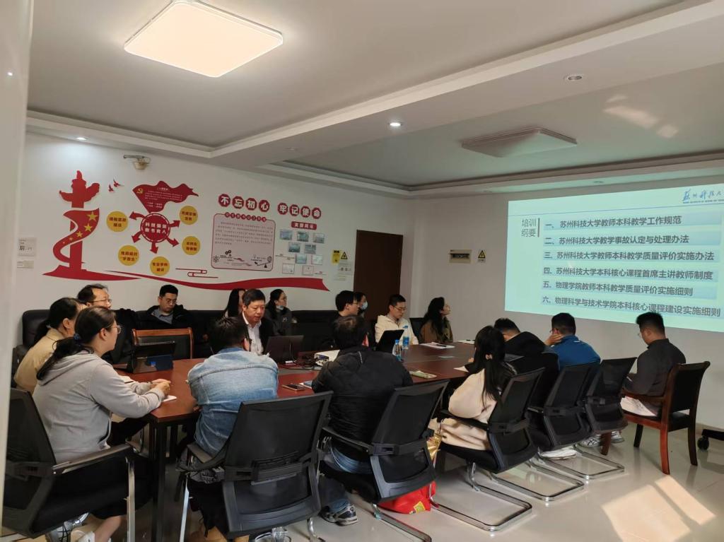 在教学质量评价方面,程新利结合《苏州科技大学教师本科教学质量评价实施办法》及学院据此制定的《物理科学与技术学院教师本科教学质量评价实施细则》,系统阐述了校院两级教学质量评价的指标体系、评价方式及结果运用机制,引导青年教师树立全面的教学质量观,注重教学反思与持续改进。